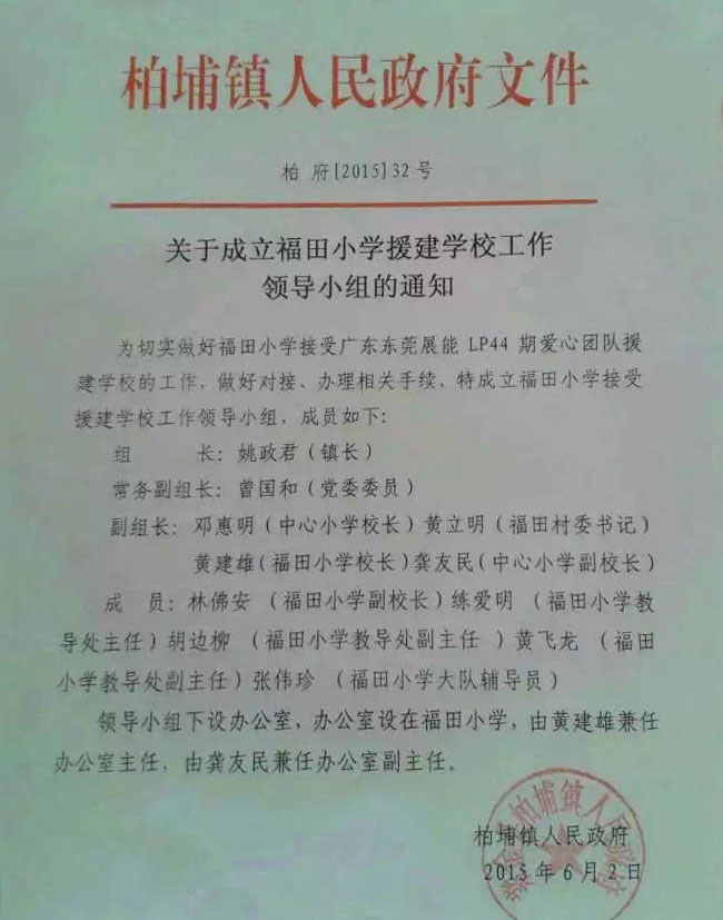 捐赠爱心学校(广东省河源市紫金柏铺镇(福田小学)
